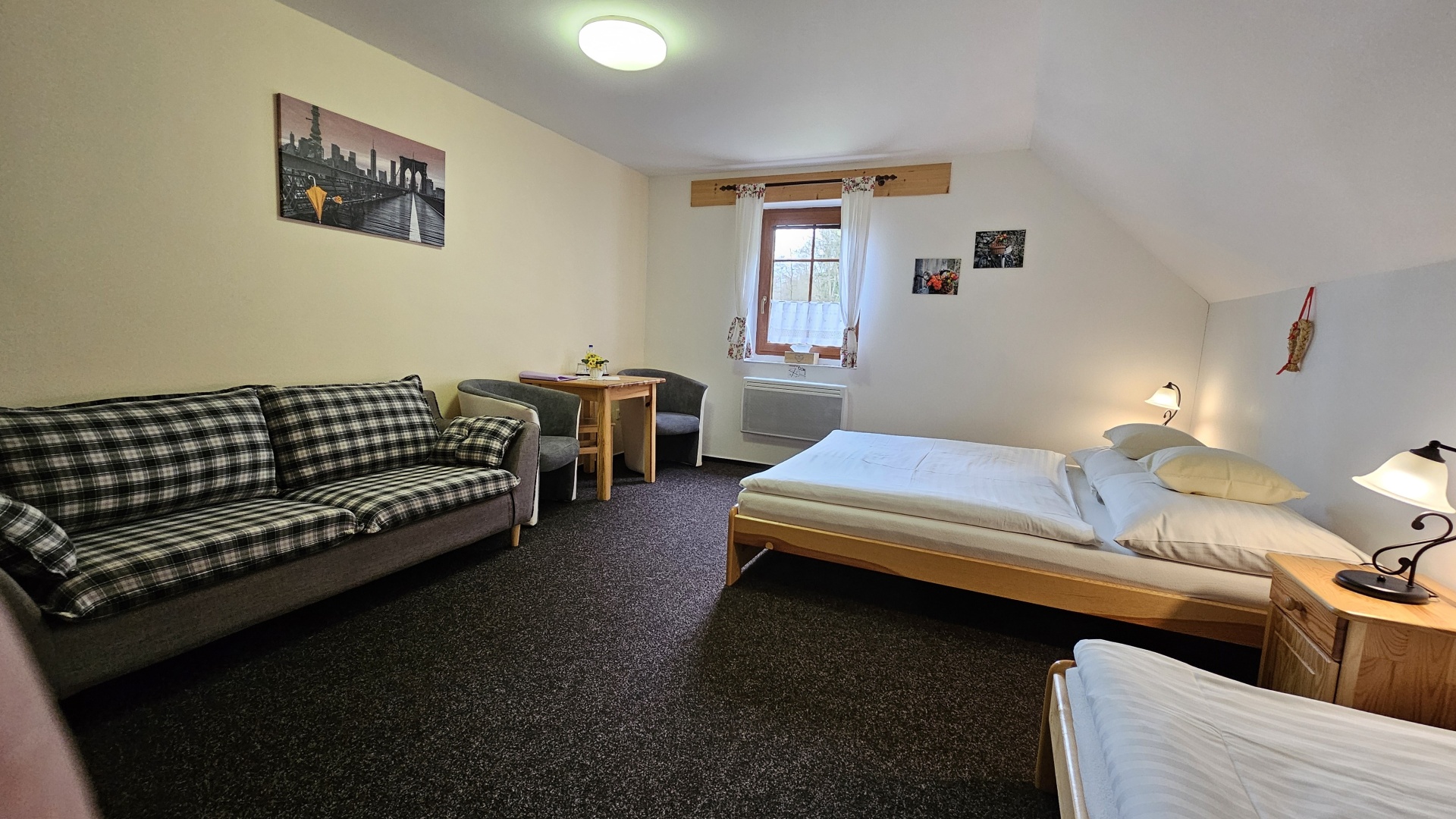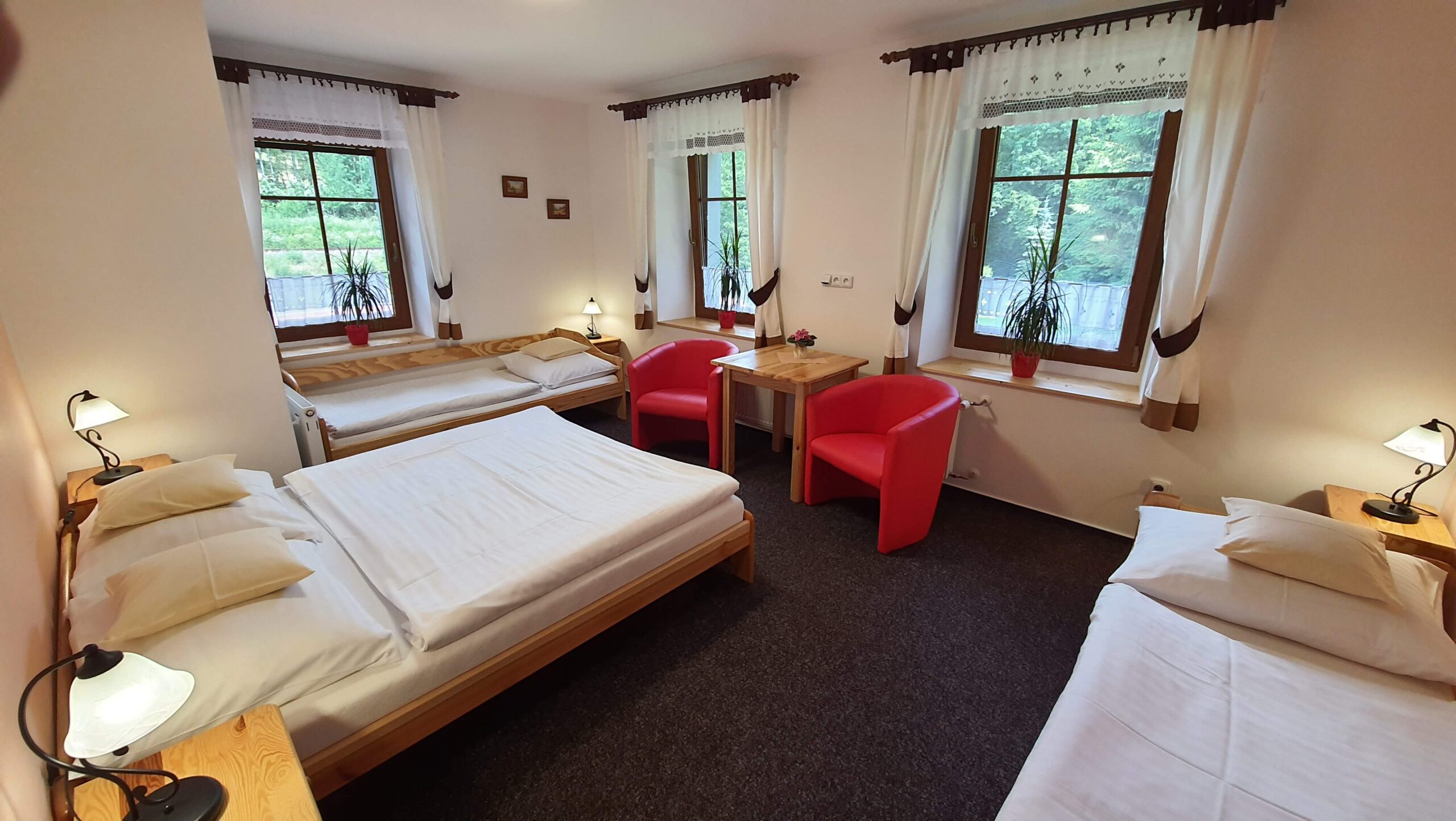 There is a fridge on each floor. The guesthouse has a beautiful large garden where there is a possibility of enjoyment for our youngest customers. We have a trampoline, sandpit, balls and other games. In our garden you can build a fire and roast some sausages, which we will be happy to prepare for you. The guesthouse is suitable for family holidays. Hiking, climbing and skiing enthusiasts will also find us to their liking. There are plenty of swimming opportunities in the surroundings. For companies we can prepare small training sessions or arrange various types of celebrations. Free parking is a matter of course.